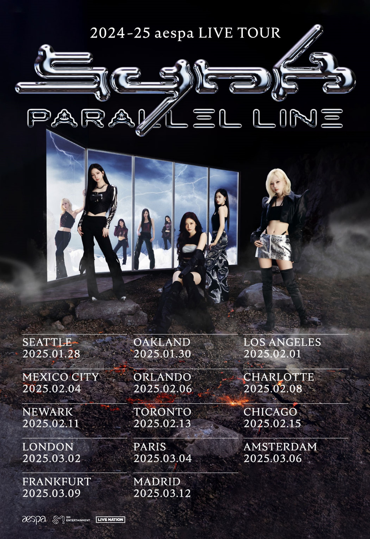 오늘(27일) 0시 에스파 공식 팬클럽 커뮤니티 및 SNS 계정에는 ‘2024 – 25 aespa LIVE TOUR – SYNK : PARALLEL LINE –‘(2024 – 25 에스파 라이브 투어 – 싱크 : 패러렐 라인 –)의 포스터 이미지가 오픈, 한층 확장된 규모의 투어를 예고해 이목을 집중시켰다.