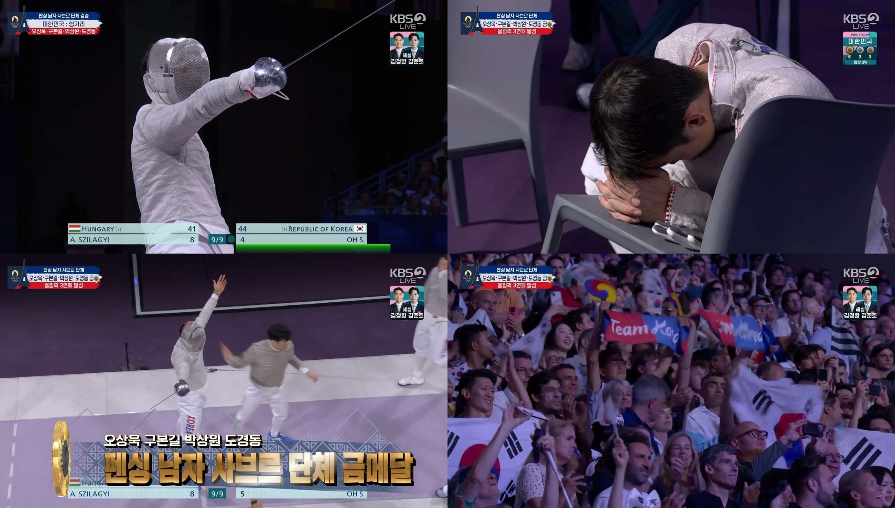 마침내 그랑팔레 시상대의 가장 높은 곳에 남자 사브르 대표팀이 올라가자, 최승돈 캐스터는 “경기장 밖에서 만납시다. 행복한 밤을 누리기 바랍니다. 대한민국 펜싱과 함께 더욱 번창합시다”라며 중계를 마무리했다.