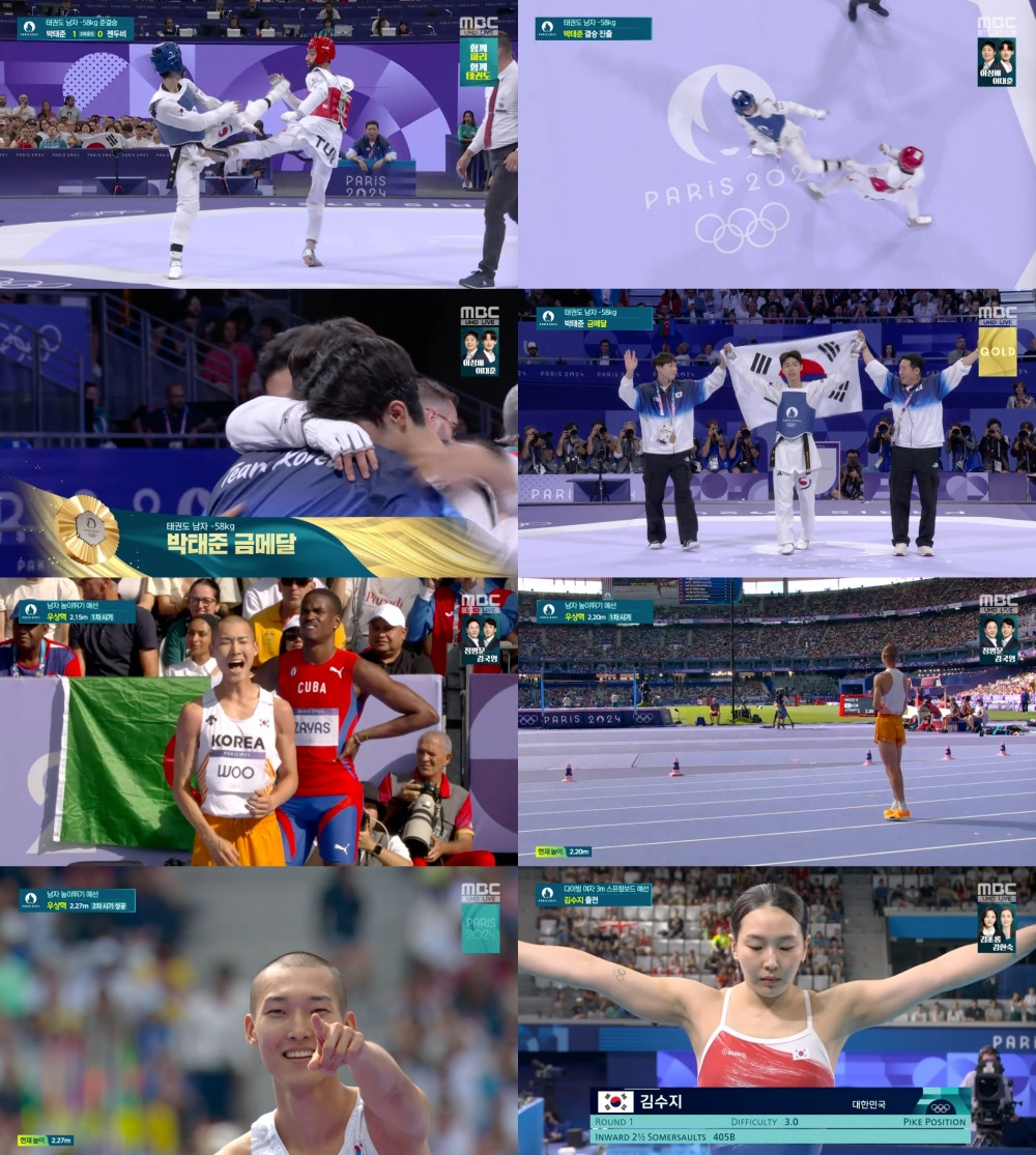 8일 시청률 전문 조사기관인 닐슨이 집계한 자료에 따르면 지난 7일 펼쳐진 대한민국 파리올림픽 경기에서 MBC는 전 국민적 관심이 높은 태권도와 육상 높이뛰기, 다이빙까지 어제 열렸던 주요 종목 모두 시청률과 시청자 수 1위의 결과를 보여주며 독주체제를 공고히 했다.
