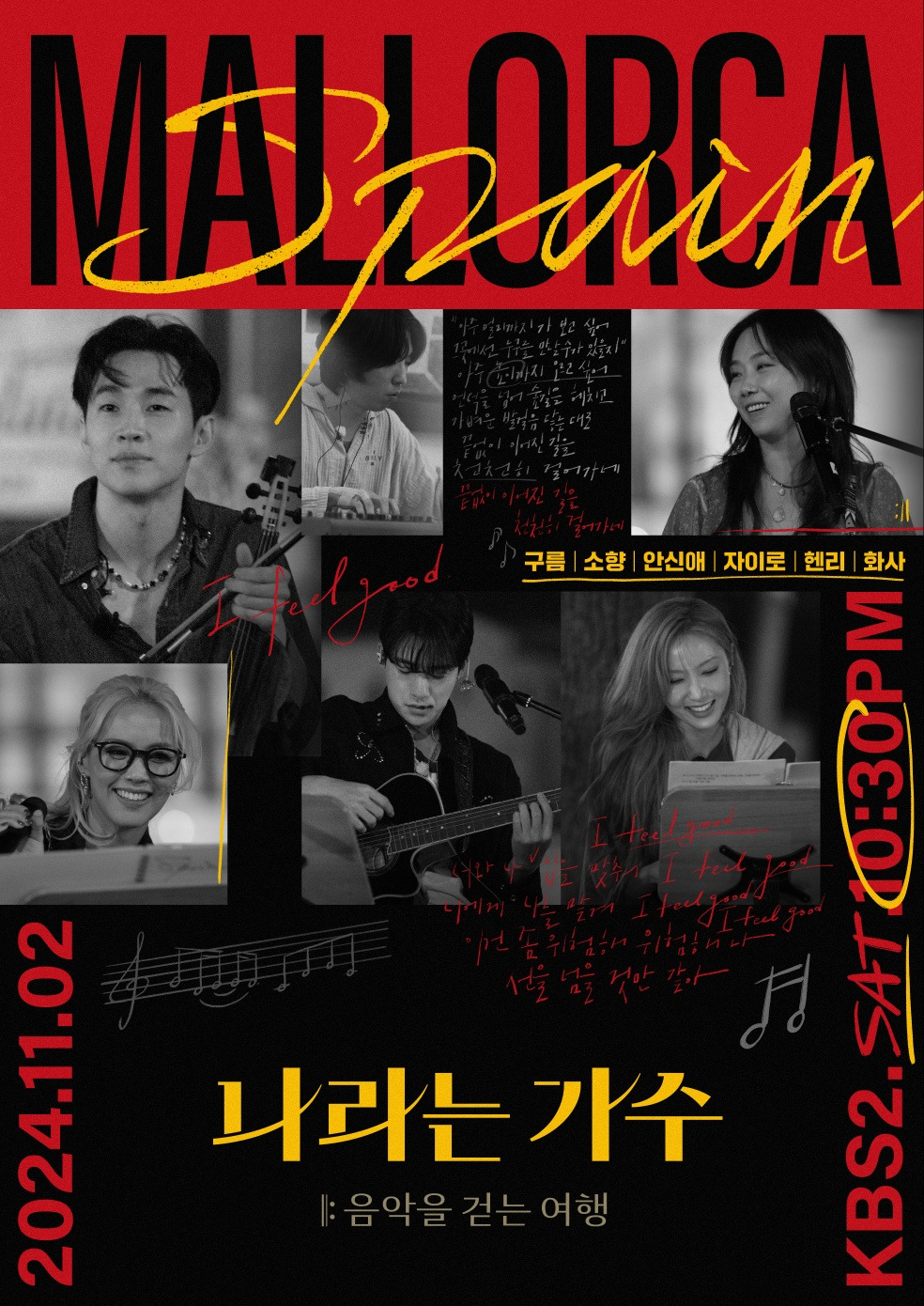 '나라는 가수 인 스페인'은 K팝 대표 실력파 아티스트들이 다른 '나라'의 음악과 문화를 경험하며 '나'라는 가수를 찾아가는 여행기를 그린 음악 예능 프로그램이다. 스페인 마요르카 편에는 화사, 소향, 헨리, 안신애와 프로듀서 구름, 기타리스트 자이로가 출연한다.