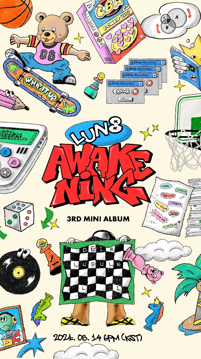 지난 16일 오후 판타지오 공식 SNS를 통해 ‘AWAKENING’ 발매 소식을 알리는 커밍업 티저 영상이 공개됐다. ‘자각’, ‘깨어남’을 의미하는 앨범명과 더불어 스케이트보드, 체스, 농구, LP판, 게임기 등 익살스럽고 키치한 아이템들이 루네이트의 새 활동을 향한 기대를 부른다. ‘AWAKENING’은 루네이트가 지난 3월 발매한 미니 2집 ‘BUFF’(버프) 이후 5개월 만에 발표하는 국내 컴백작이다. 올해 루네이트는 국내뿐만 아니라 지난달 일본에서 데뷔 싱글 ‘Evergreen’(에버그린)을 발매하고 오리콘 주간 싱글 랭킹 TOP 10에 오르는 등 성공적인 현지 활동을 펼쳤다.