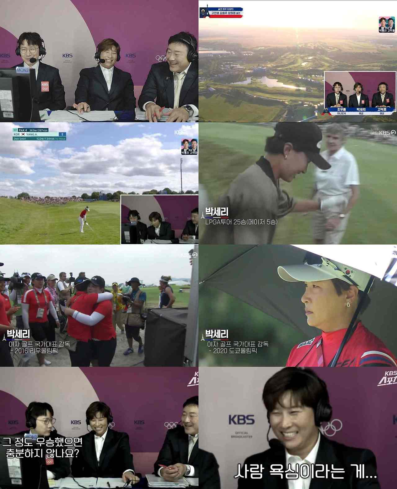 또 ‘전설의 명장면’인 박세리 위원의 선수 시절 1998년 US오픈 우승과, 박세리 위원이 감독 시절 리우올림픽에서 금메달을 따낸 박인비의 우승 VCR도 다시 볼 수 있었다. 박세리 위원은 “US오픈 때 한국 나이로 21살이었다. 가장 겁이 없을 때였다”라고 돌아봤고, 고덕호 위원은 “모습을 보니 얼굴도 까맣고 겁 없어 보인다”고 동감했다. 리우올림픽에 대해서는 “선수들이 노력했지, 제가 뭘 했냐”며 손사래를 쳤다.