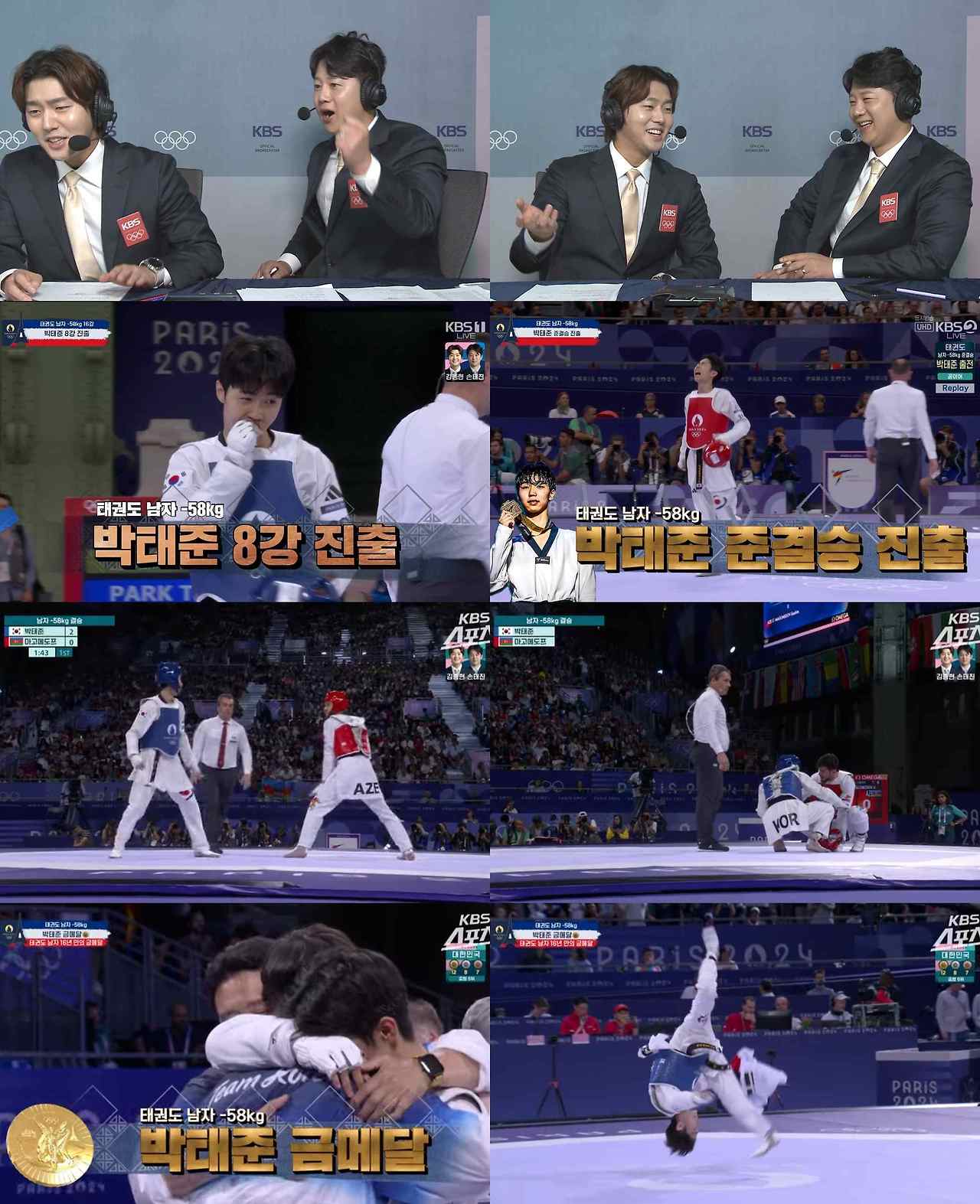 ‘뉴스타’ 박태준이 태권도 남자 –58kg 금메달을 획득하며 손태진 KBS 해설위원이 16년 동안 갖고 있던 ‘남자 태권도 마지막 금메달’ 타이틀을 반납시켰다.