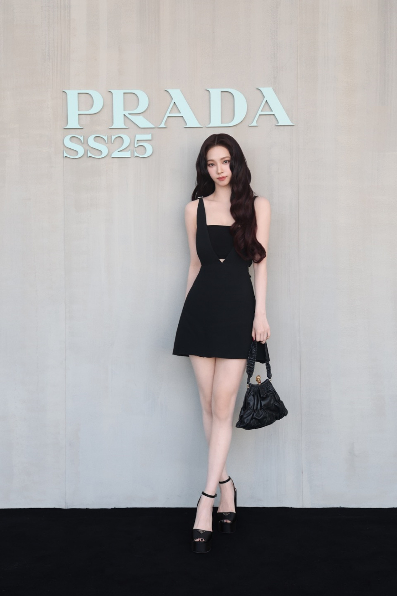 카리나는 지난 8월 프라다의 브랜드 앰버서더로 정식 발탁되어 다채로운 협업을 예고했던바, 그 시작으로 참석한 이번 패션쇼에서 실루엣이 돋보이는 블랙 미니 드레스를 입고 매혹적인 비주얼을 뽐내 이목을 사로잡았으며, 의상의 분위기에 걸맞은 세련된 애티튜드로 각종 외신의 스포트라이트를 받았다.
