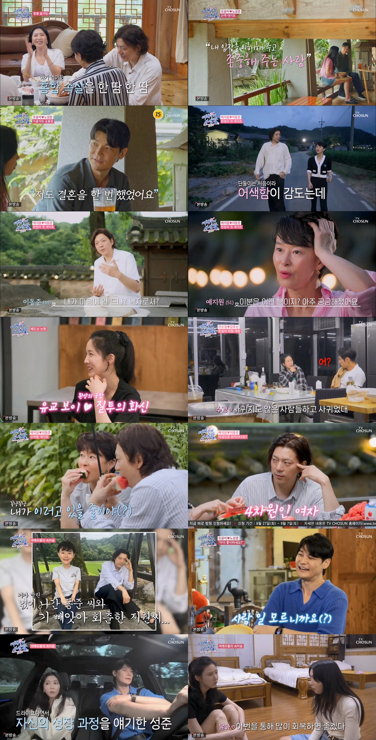 오윤아가 노성준과의 대화를 곱씹어보며 생각에 잠긴 사이, 예지원은 이동준과 함께 저녁 산책에 나섰다. 둘만의 첫 데이트에 어색하던 두 사람은 공통점인 ‘무용’ 이야기로 대화의 물꼬를 텄다. 어떤 질문을 해도 무용 이야기만 이어진 두 사람. 이동준은 예지원의 요청으로 장구와 북 연주까지 선보였다. 이 데이트 후 이동준은 “저는 남자로 온 거라 무용 이야기 안 하고 사랑 전선에 뛰어들고 싶은데…내가 좀 마음에 안 드나?”라며 시무룩해졌다.