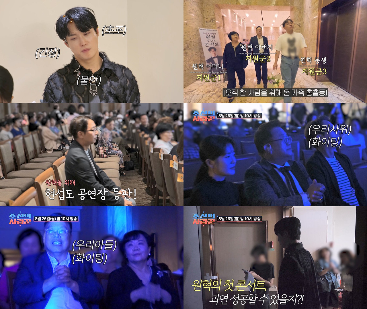 26일(월) 방송될 ‘조선의 사랑꾼’에서는 가장으로서 홀로서기를 시작한 원혁의 단독 콘서트 당일이 공개된다. 선공개 영상에서는 원혁의 가족이 든든한 응원군으로 총출동했다.