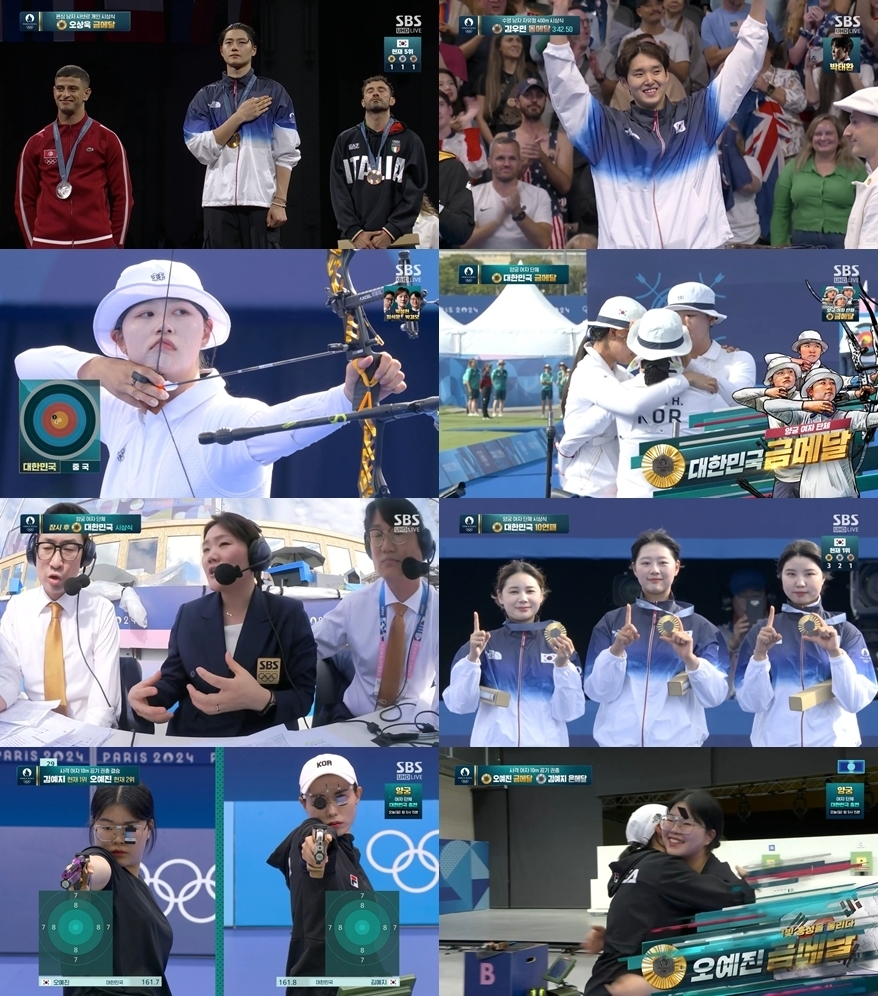 또한, 여자 양궁 단체전 올림픽 10연패 역사를 쓰는 낭보를 파리에서 생생하게 전하며 시청자들을 TV 앞으로 모이게 했다. 이틀 연속 금메달을 안긴 대한민국 선수단의 선전에 SBS도 시청률 순항을 이어가고 있다.