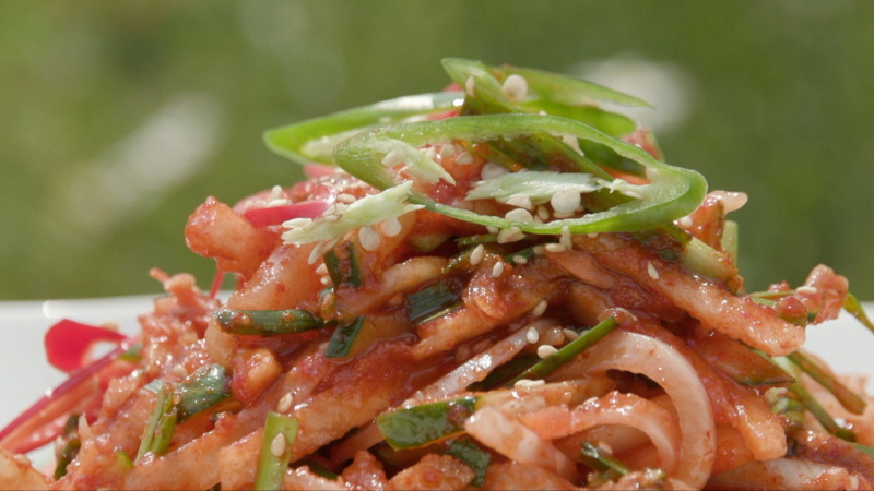 여름의 길목, 가장 싱싱한 은어만 골라 했다는 은어밥도 빠질 수 없다. 아궁이에 솥 밥을 하고, 뜸 들 때 은어를 꽂아 넣어 형체가 그대로 살아있는 은어밥은 이 계절만 즐길 수 있는 별미다. 오래 두고 먹기엔 은어 젓갈만 한 것이 없다. 멸치액젓 구경하기 힘들었던 이곳에서는 은어 액젓으로 나물을 무쳐 먹었단다. 은어철이면 온 동네를 떠들썩하게 하는 은어의 귀환을 환영하는 잔칫상에 오늘도 마을이 들썩인다.
