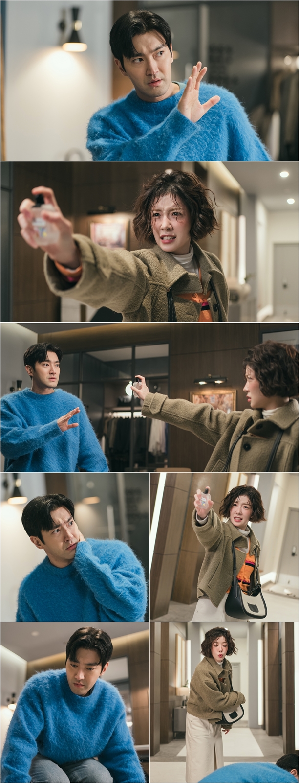 이와 관련 최시원과 정인선이 만나자마자 충격적인 돌발 사건으로 티격태격하는 ‘달콤 살벌 첫 만남 투샷’이 포착돼 시선을 강탈한다. 극 중 한소진(정인선)이 심연우(최시원)를 향해 진격하며 정체불명의 액체 스프레이를 발사하는 장면. 심연우는 처음 보는 한소진의 돌진 행보에 놀라 얼굴을 막아보지만 한소진의 재빠른 행동에 속수무책으로 당하고 만다. 이어 심연우가 무릎을 꿇은 채 망연자실한 표정을 지어보이면서, 심연우와 한소진에게 과연 무슨 사건이 터진 것일지, 앞으로 두 사람에게 어떤 후폭풍이 몰려올지 귀추가 주목된다.