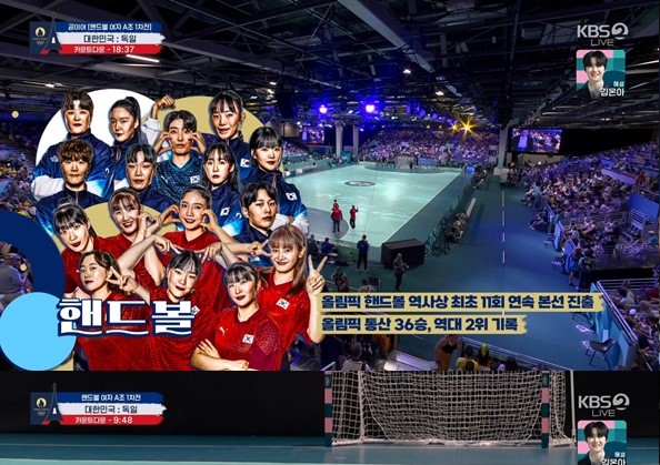 KBS 파리올림픽 중계의 ‘톱모델 MC’ 이현이가 ‘어펜져스 듀오’ 김정환X김준호 해설위원과 함께 100년 만에 파리에서 열리는 하계올림픽 현장 생방송 신고식을 치렀다. 그리고 이들이 포문을 연 ‘팀 코리아’의 첫 경기, 김온아 해설위원과 남현종 캐스터의 중계로 생방송된 핸드볼 여자 A조 1차전 독일전은 손에 땀을 쥐는 접전 끝에 한국의 23대22 승리로 끝났다.