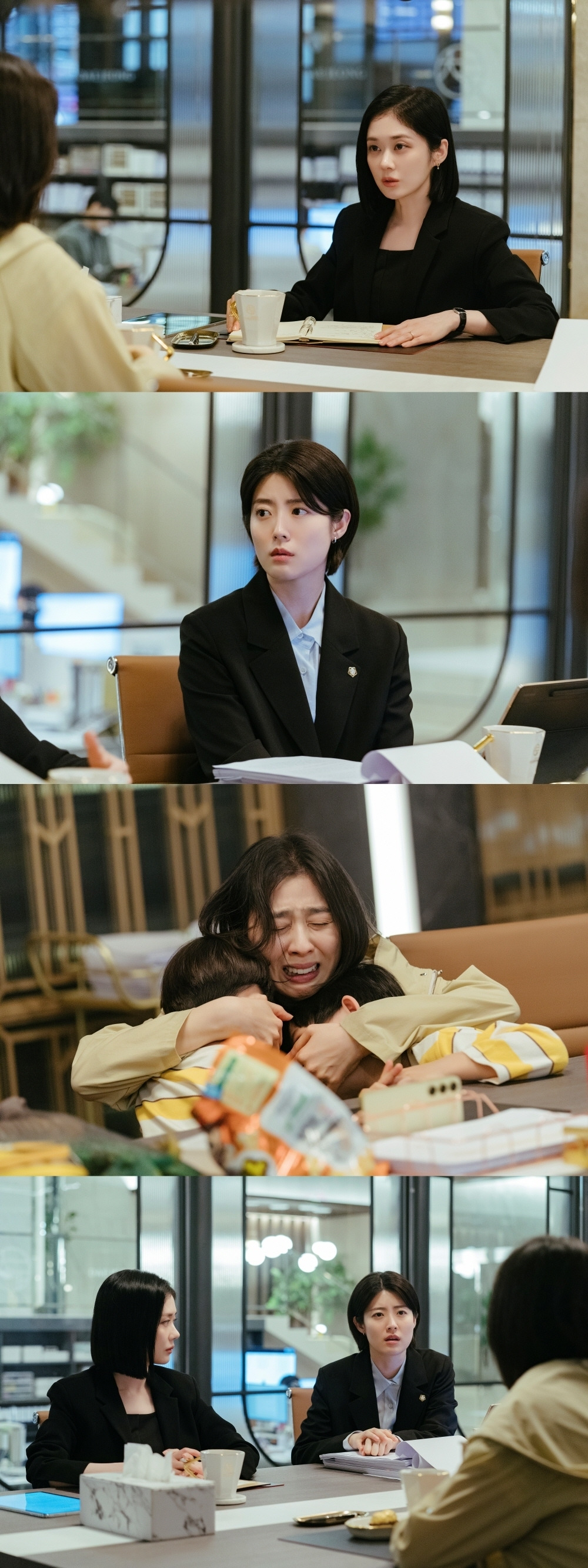 그런 가운데 공개된 사진 속 로펌 ‘대정’의 상담실에서 포착된 차은경과 한유리, 그리고 이들을 찾아온 ‘뉴페이스’ 의뢰인의 모습이 호기심을 자극한다. 두 변호사가 마주한 다섯 번째 사건은 무엇일까. 두 아이를 끌어안고 처절하게 통곡하는 의뢰인. 그에게 확신의 찬 얼굴로 무언가 조언하는 듯한 차은경의 아우라가 눈길을 끈다. 이어 차은경과 의뢰인을 바라보며 어쩐지 조심스러운 마음을 내비치는 한유리의 눈빛도 궁금증을 자아낸다. 과연 범상치 않은 의뢰인이 가진 사연은 무엇일지, 의뢰인을 바라보는 차은경과 한유리의 각기 다른 시선의 의미는 무엇일지 이목이 집중된다.