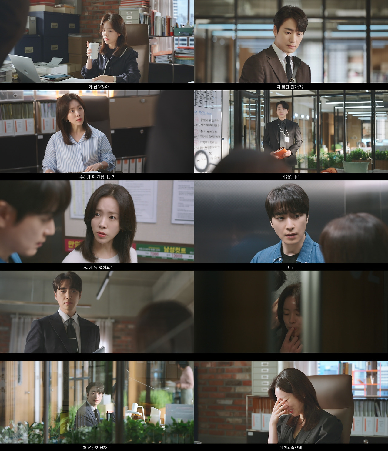 멀어지려고 할수록 가까워지는 지윤과 은호의 미묘한 텐션 변화는 그 후로도 계속 관찰된다. 은호에게 관심이라고는 1%도 없어 보이던 지윤이 먼저 그가 무엇을 좋아하는지 묻고, “사내 연애는 재앙”이라더니 오피스에서 남들의 시선을 피해 비밀 연애를 즐긴다. 여기에 직원들 몰래 은호와 시선을 교환하며 “귀여워 죽겠네”라는 지윤의 반전 ‘은호 앓이’까지 포착됐다. 짧은 영상만으로도 시청자들을 제대로 간질이니, 지윤-은호 커플의 로맨스에 기대감이 더욱 불타오를 수밖에 없다.