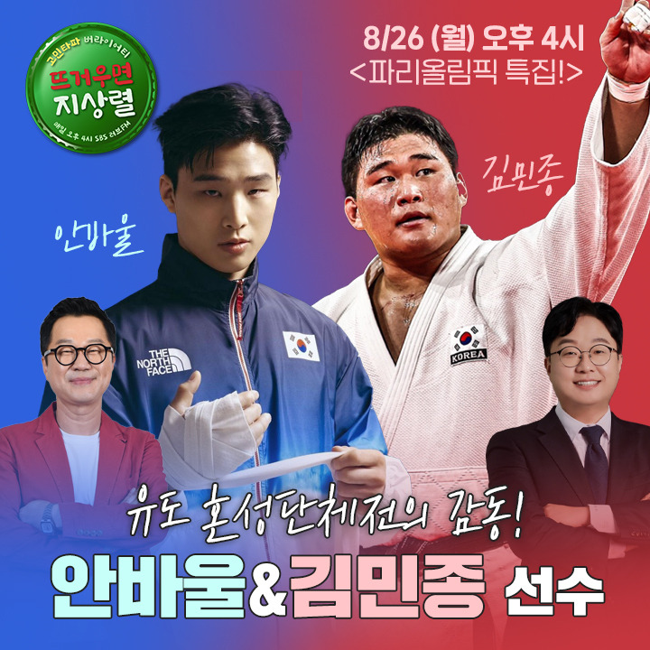 파리 올림픽에서 가장 감동적인 순간으로 꼽히는 유도 혼성 단체전의 동메달 리스트 안바울, 김민종 선수가 ‘뜨거우면 지상렬’에 출격한다.