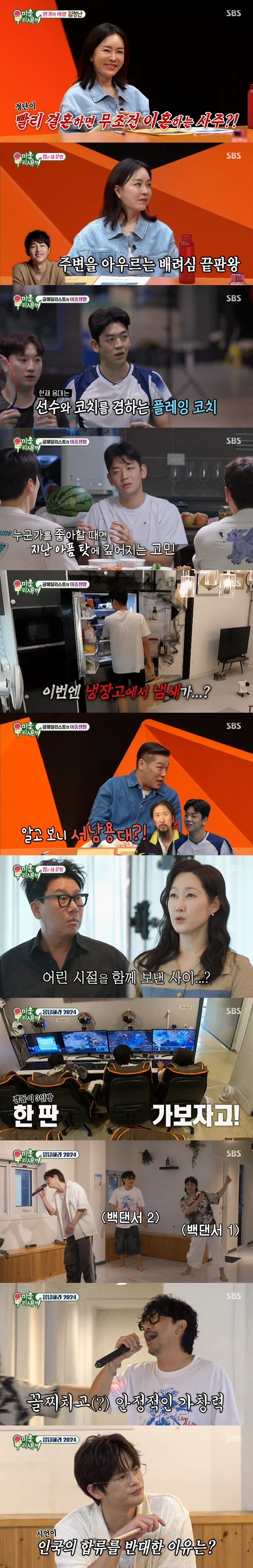 이용대는 “중 3 때부터 22년 동안 숙소 생활을 했더니 혼자 사는 건 너무 외롭더라. 용인 집을 팔까 생각도 하고 있다”라고 밝혔고, 밥을 먹던 후배들은 놀라 사레가 걸리기도 하면서 폭소를 자아냈다. 서장훈은 “후배들은 너무 싫다. 저 안에 (용대가) 같이 있으면 사감 역할을 할 것”이라고 일침을 가했다.