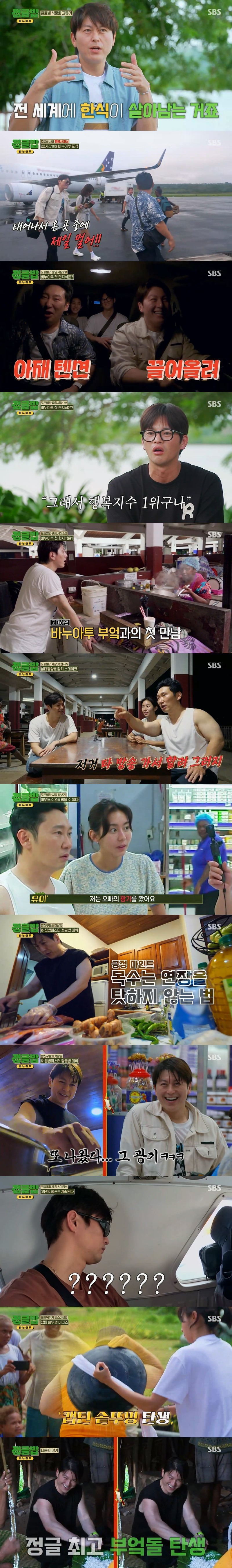남태평양의 바누아투로 향하게 된 네 사람. 적도를 넘어 지구 반대편까지 가야하는 긴 여정에 시작부터 대형사고가 터졌다. 바누아투 직항편을 운영하는 항공사가 파산하며 비행기 표가 공중분해 된 것. 급하게 표를 구한 ‘정글밥’ 멤버들은 경유를 거듭하는 여정을 거쳐 바누아투 수도에 도착했고, 류수영은 “태어나서 온 곳 중 제일 멀다”라며 땅을 밟은 감격을 온몸으로 표현했다.