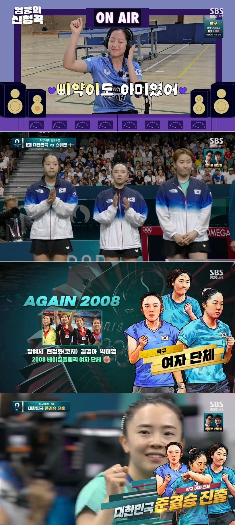 ‘탁구 레전드’ 현정화 SBS 해설위원이 신유빈의 무한한 성장 가능성에 혀를 내두르며 준결승 진출에 힘찬 기운을 불어넣었다. SBS는 2024 파리올림픽 ‘라켓 종목’ 중계에서도 강세를 보이며 시청률 1위로 선두를 달렸다.