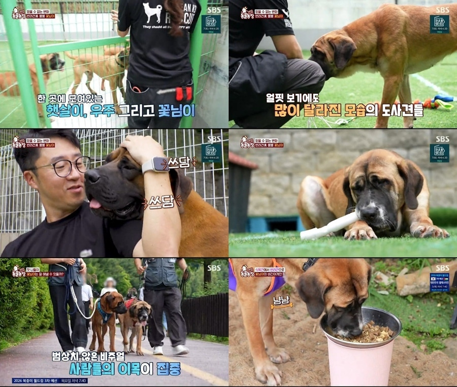 그런 와중에 지난겨울 한 동물보호소를 찾은 동물농장 제작진은 다양한 견공들을 만날 수 있었는데, 새끼 강아지들을 얻으려고 강제 임신을 반복하는 개 농장에서 구조한 녀석들, 다양한 목적을 위해 학대를 당했던 강아지들을 구조해 보호하고 있었다. 그리고 한편에는, 따로 관리되고 있는 덩치 큰 두 마리의 믹스 도사견 우주와 햇살이. 덩치가 크고 무섭게 생겨서 움찔했던 제작진은 곧 너무나 순하고 오히려 소심한 두 마리의 매력에 빠지고 말았다.